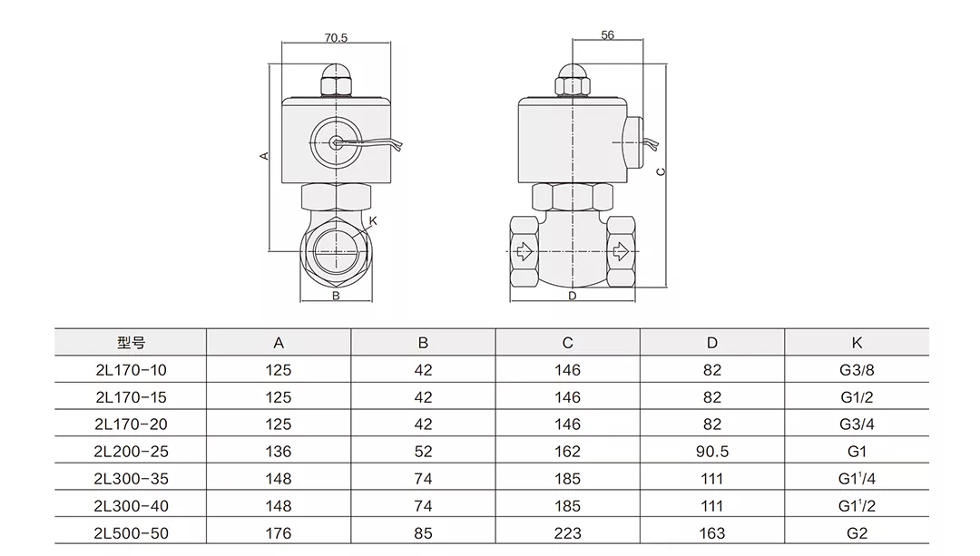 2L höyrymagneettiventtiilin 2-tie Ominaisuudet: