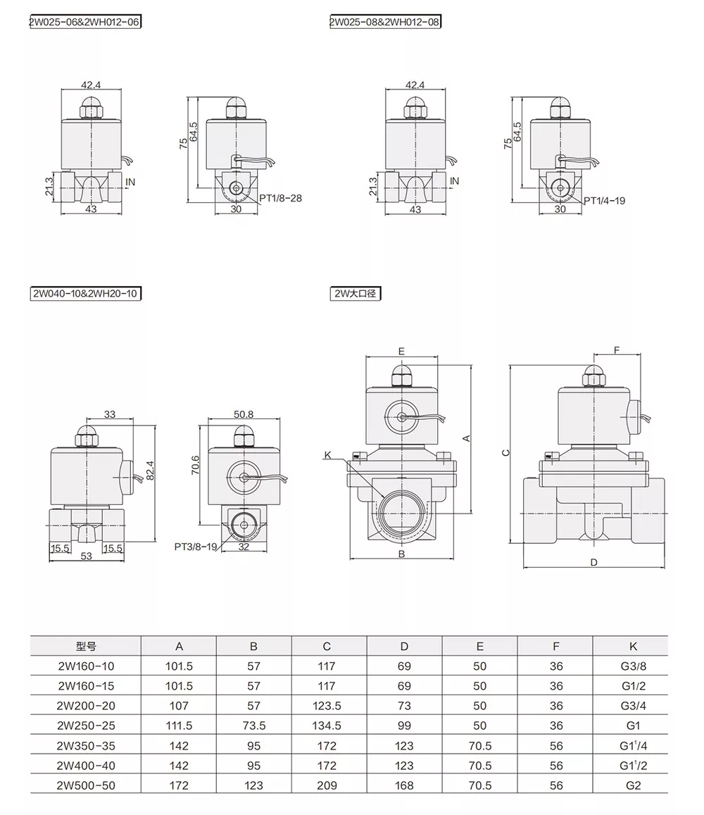 2 W:n 2-tie pneumaattinen magneettiventtiili normaalisti suljetussa solenoidiventtiilissä on suoratoiminen rakenne, joka on rakennettu tarkkuuskoneistetun venttiilirungon, korkean suorituskyvyn kelan, ruostumattomasta teräksestä valmistettujen mäntien ja luotettavien tiivistyskomponenttien avulla. Tämä sarja sisältää kaksi virtaustyyppiä: pienivirtausmalli vakiojärjestelmiin ja suuren virtauksen malli suuren kapasiteetin nesteen ohjaukseen.