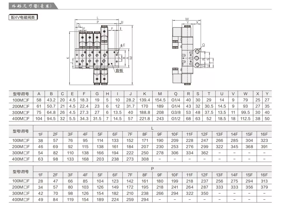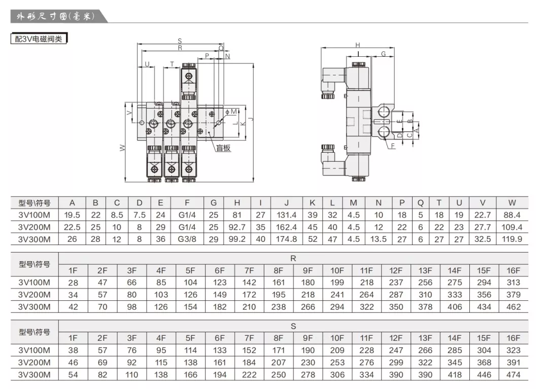 3 V 4 V: n jakotukin venttiili on levy, jolla on monia ilmapolkuja. Siinä on kompakti muotoilu. Solenoidiventtiilin pohjakisko voi asentaa 2 - 20 pneumaattista solenoidiventtiiliä yhdelle jakotukille. Mutta jakoputken sijaintien lukumäärää ei voida muuttaa.