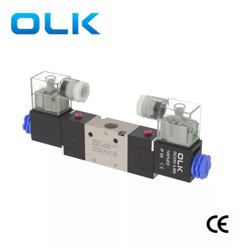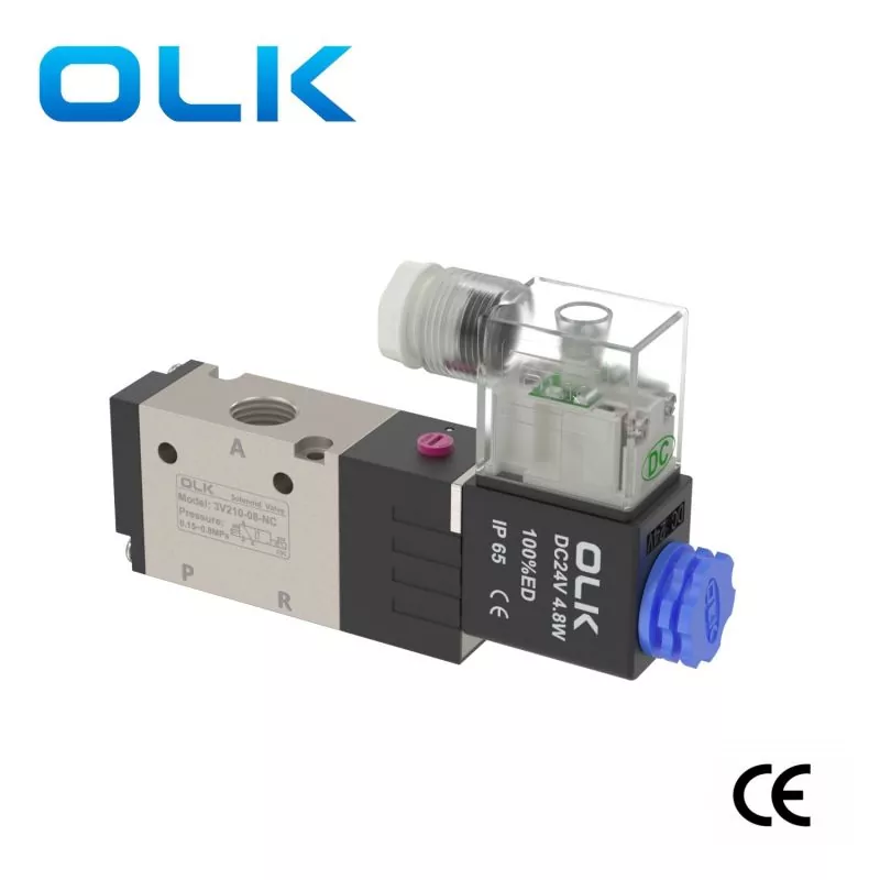 OLK 3V200 -sarja, 3-asentoinen 2-tieilmamagneettiventtiili korkealaatuisesta alumiiniseoksesta. Toimintatila on sisäinen pilottityyppi. Soveltuu yksitoimisten pneumaattisten sylintereiden ohjaukseen. Soveltuu käytettäväksi erilaisissa ankarissa työpaikoissa.