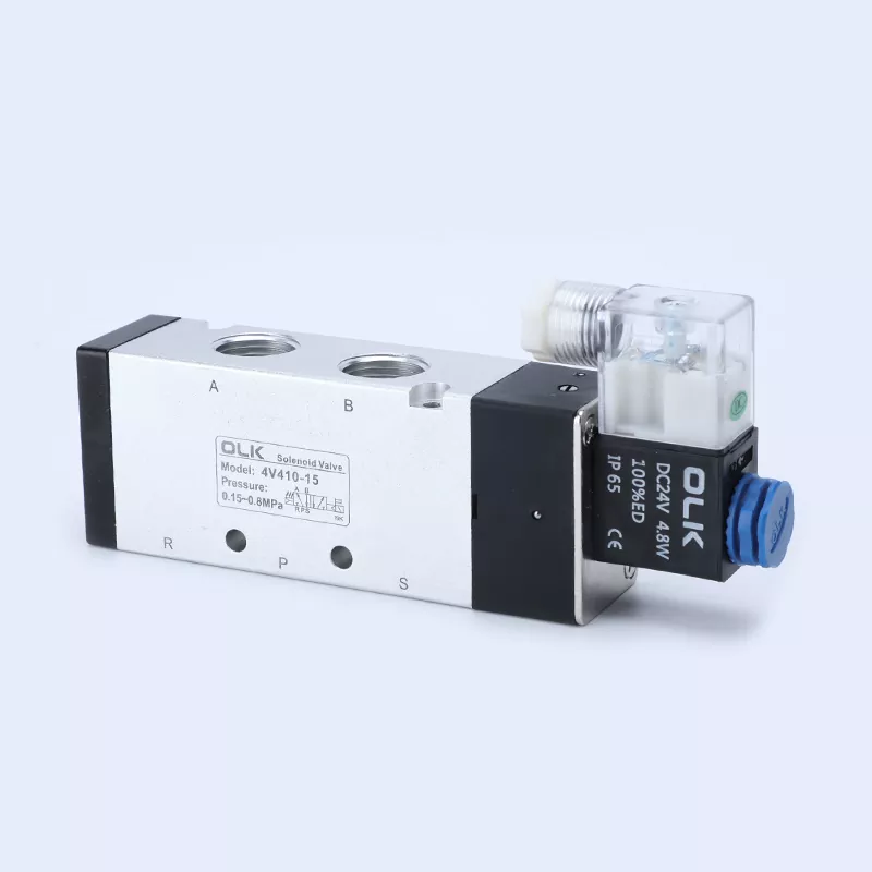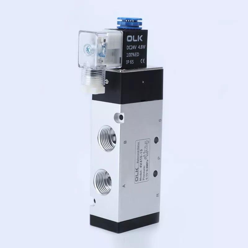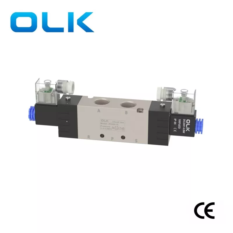 OLK 4V400 -solenoidiventtiili 5 -tapaa, 2 sijainti 5way tai 3 asento 5 -suuntainen pneumaattinen solenoidiventtiili, 4V400 -sarjan solenoidiventtiilin koko on suurin malli. Liitäntämääritys on yleensä 1/2 ". Pinta on valmistettu korkealaatuisesta alumiiniseos-raaka-aineesta, joka sujuu sujuvasti ja reagoi nopeasti. Sillä on vahva vakaus ja tarkka kiillotushoito ilman kulutusmerkkejä. Se käyttää riittävästi puhdasta kuparikeloja, jotka eivät ole helppoja ylikuumenemisia ja jolla on pidempi ja kestävämpi käyttöikä.
