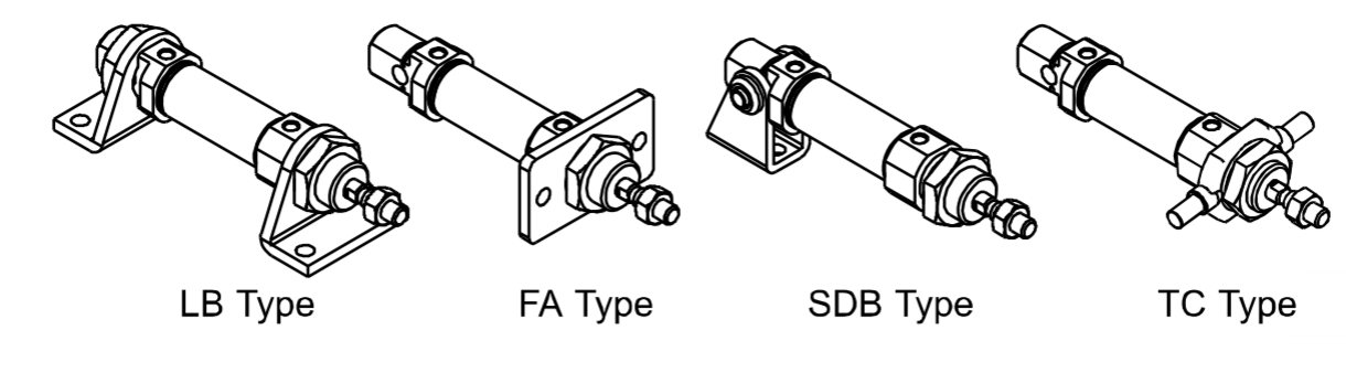 ·Sylintereistä ja sylintereiden kiinnitystarvikkeista on saatavana erilaisia eritelmiä asiakkaiden valinnassa.