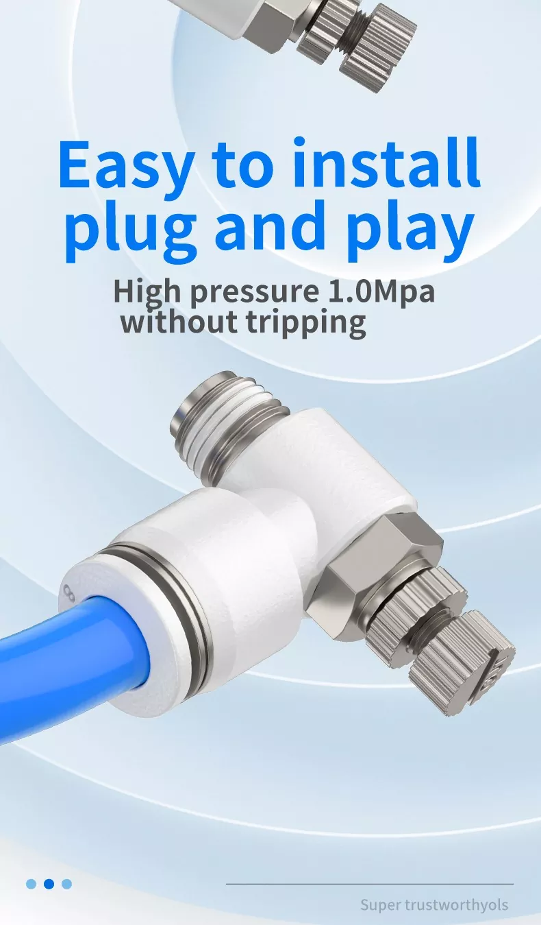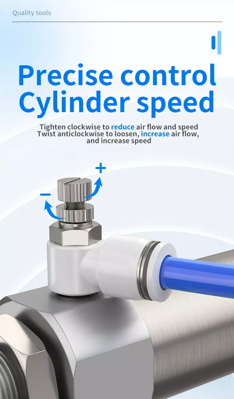 Nopeussäätimet ovat yleisiä pneumaattisia komponentteja, joita käytetään säätämään toimilaitteiden ulos- ja sisäänvetonopeutta. Kaasuventtiilit ovat pääasiassa virtausta säätäviä komponentteja, jotka säätelevät sylinterin nopeutta, mutta niiden asennusasennot, kuristussuunnat ja rungon rakenteet vaihtelevat. Ohjausmenetelmän mukaan ne voidaan jakaa pakokaasu- ja tulo-kuristukseen.