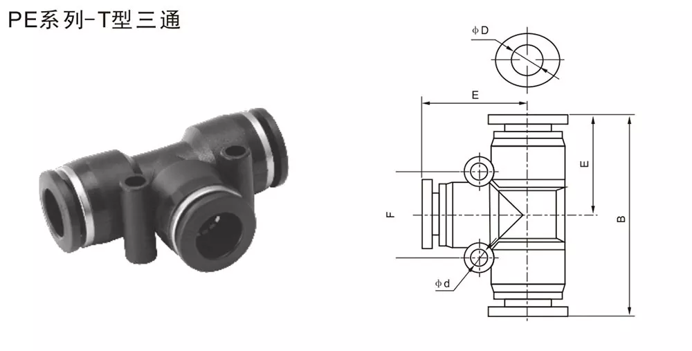 PE-unionin tee-työntö putken sovittamisessa on t-muotoinen asennus, jota käytetään ilmavirran jakamiseen tai yhdistämiseen pneumaattisissa järjestelmissä.