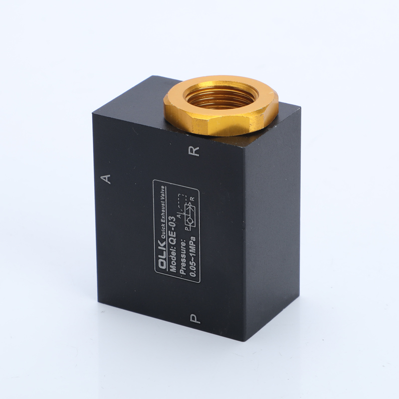 OLK (OULEIKAI) pneumaattinen pakoventtiili lyhentää tehokkaasti järjestelmän poistoaikaa. Suuren virtaushalkaisijan omaava Válvula de escape QE pystyy purkamaan kaasua nopeasti. Jotta järjestelmä pystyy vapauttamaan kaasun paineen nopeasti ja parantamaan työtehoa tarvittaessa, on suositeltavaa asentaa QE-sarjan pikapoistoventtiilit paikkoihin, joissa järjestelmässä tarvitaan pakokaasua, jotta poistokanava pysyy esteettömänä.
