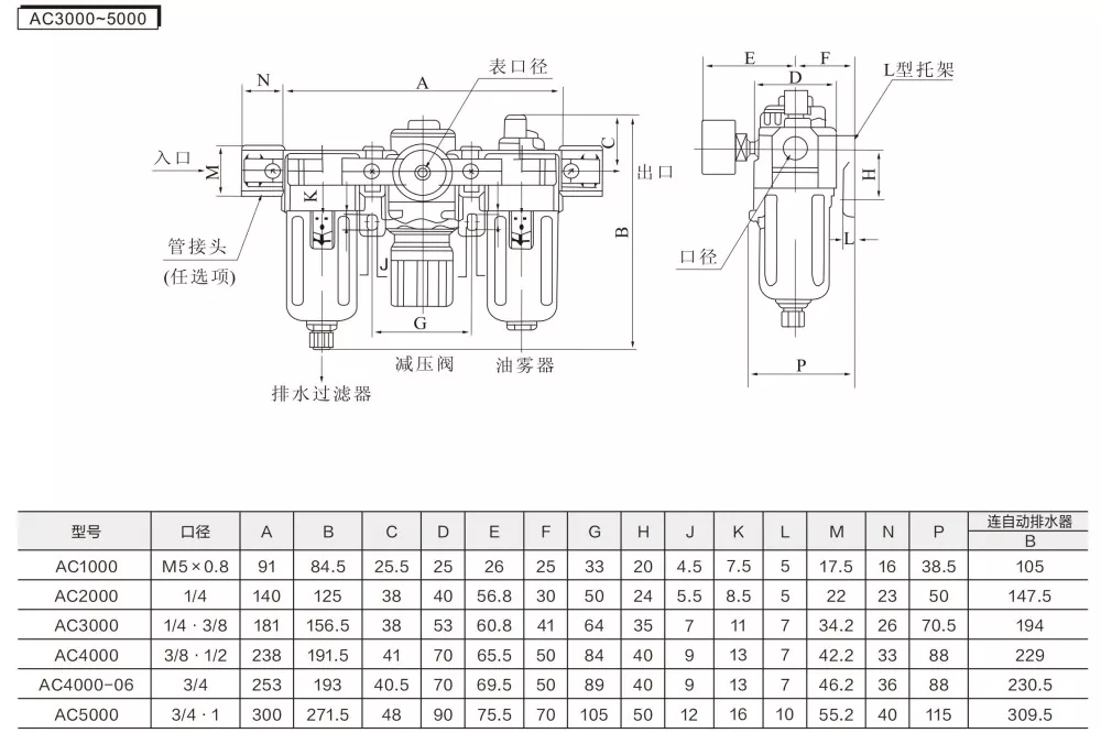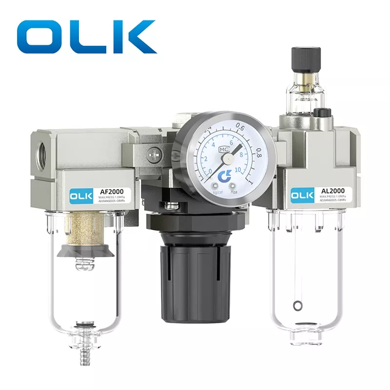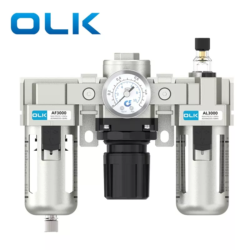 SMC Type AC FRL Unit (Filter-Regulator-Lubricator) on pneumaattinen peruskomponentti, joka yhdistää ilmanlähteen suodatuksen, paineen vähentämisen ja säädön sekä voitelukäsittelyn. Se tarjoaa puhdasta, vakaata ja voideltua paineilmaa pneumaattisille järjestelmille, mikä pidentää pneumaattisten komponenttien käyttöikää ja parantaa järjestelmän vakautta. OLK AC -sarjan FRL-yksikkö toimii nykyaikaisten pneumaattisten järjestelmien olennaisena "suojelijana".