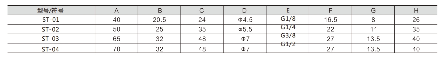 Jos ilmaputkenvarusteita ei valita kunnolla, aiheuttaen ilmanoton tai pakokaasun satamassa hyvin pieneksi, venttiilin ydin ei välttämättä siirry täysin, mikä johtaa kaikkien porttien kytkemiseen. Tämä on estettävä. ST-01: G1/8; ST-02: G1/4; ST-03: G3/8; ST-04: G1/2
